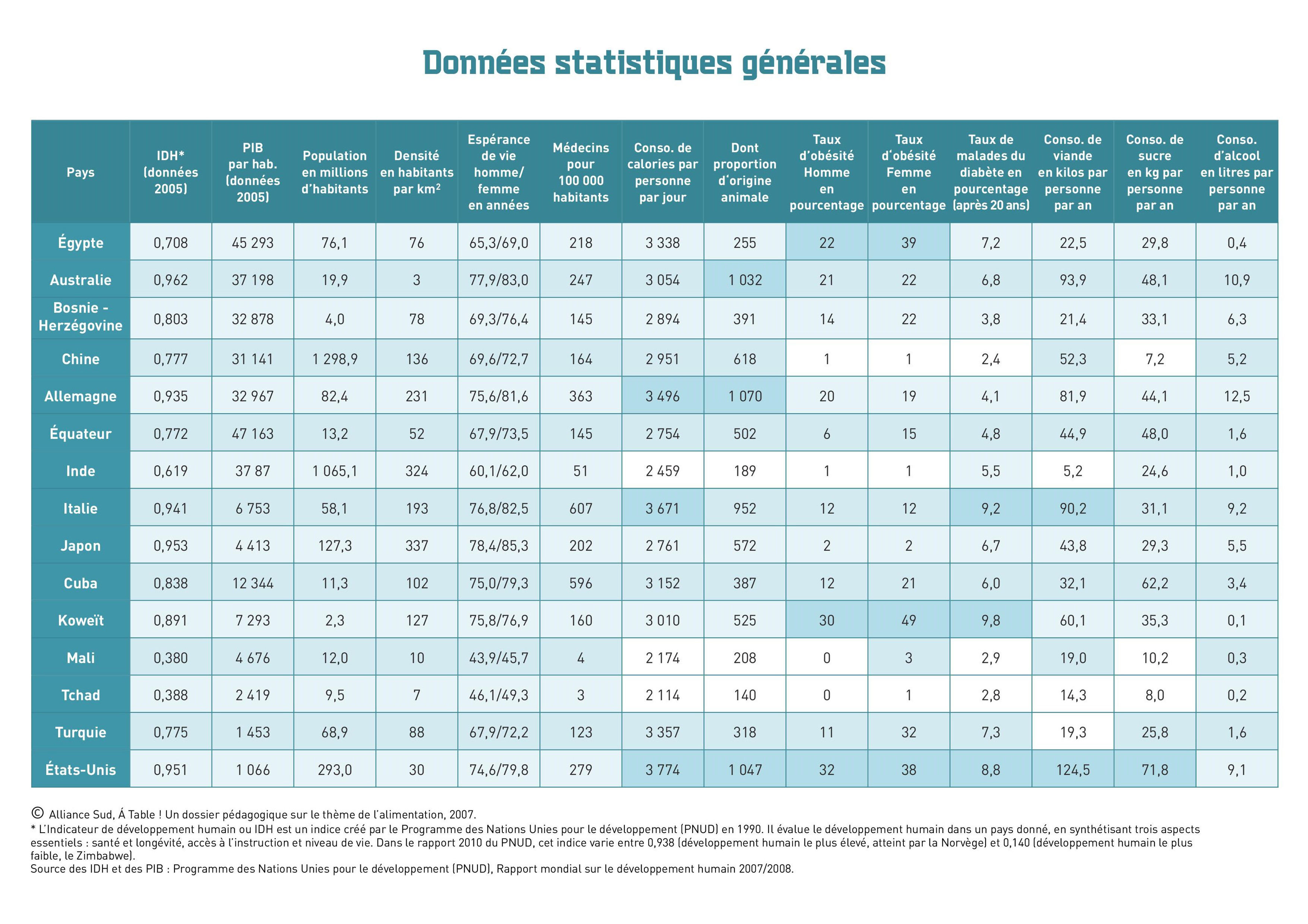 Egypte ; Australie ; Bosnie Herzégovine ; Chine ; Allemagne ; Equateur ; Inde ; Japon ; Italie ; Cuba ; Koweit ; Mali ; Tchad ; Turquie ; États-Unis ; FranceRésumé : Ce dossier pédagogique s'appuie sur 16 photographies de Peter Menzel représentant la consommation alimentaire hebdomadaire de 16 familles de 15 pays différents. Il présente 21 séances pédagogiques ainsi que des données statistiques et un CD-ROM d'accompagnement reprenant les mêmes documents. Deux séances sont consacrées au budget des ménages en France et à l'association Les Restos du Cœur. Type de contenu : guide pratique, manuel, méthodologie Public cible : Cycle 3 (8-10 ans);Enseignant / animateur Permalink : https://www.ritimo.fr/opac_css/index.php?lvl=notice_display&id=57234 Exemplaires (5)